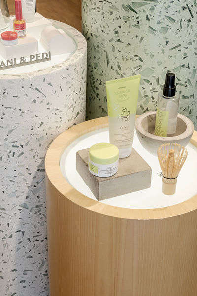 Na área de cuidados, cubas esculpidas e expositores dão o apoio necessário à operação, que conta com serviços especializados como o diagnóstico capilar. E na perfumaria, bancadas e expositores compõem o espaço da área de makeup que possui aplicativos simuladores de maquiagem, como filtros de câmera, auxiliando na escolha dos produtos, e a experimentação de fragrâncias “às cegas”, onde se descobre as famílias olfativas que mais se conectam à personalidade e gosto de cada um.
